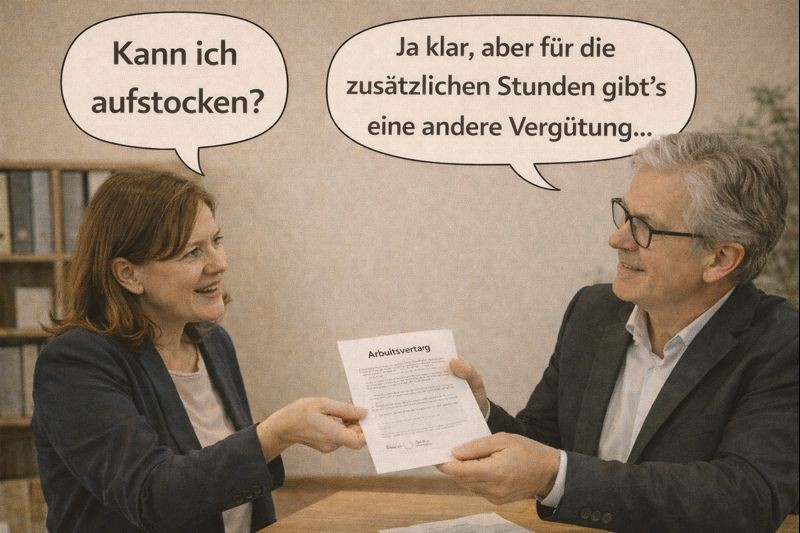 Die teilzeitbeschäftigte Frau Müller zeigt den Arbeitgeber ihren Wunsch zur Aufstockung ihrer Arbeitszeit an. Der Arbeitgeber bietet ihr daraufhin an, die Stunden der ebenfalls teilzeitbeschäftigten und gerade ausgeschiedenen Kollegin, Frau Schulz, zu übernehmen. Deren Stelle sei allerdings im Stellenplan mit einer niedrigeren Entgeltgruppe ausgewiesen, so dass Frau Müller für diesen Teil entsprechend schlechter vergütet werde.